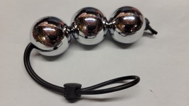 This design features a rubberized lasso measuring around .12" (3mm) that feeds through three 1.393" (35mm) wide stainless steel coated balls. I point out that they are stainless steel coated rather than solid stainless because it’s obvious the coating is on top of (what appears to be) cast iron. Each of the pendants come in at about 6oz and the lasso has a sliding compression stop that allows you to tighten the lasso around your shaft. This design inclusion is smart because it allows the user to have a short or long “dangle” of the weights from the lasso (by cutting and tying the rubber) without compromising on a firm grip of the glans. At the same time, it allows for a quick and easy put on/take off capability for the adornment.