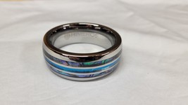 From a design perspective, the ring is based on tungsten carbide finger rings available from several foundries in China… but don’t let that deter. The result is simply stunning with the abalone shell inlays flanking a central opal inlay. When set inside the masculinely gray finish of polished tungsten carbide, it just plain works. The shimmer from this ring when the sunlight hits it is going to make you wish every day was nude beach day.