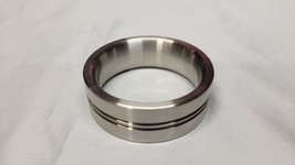 The design features a 1.870" inner diameter, a perfectly radiused inner profile, a masculine .787" width, and the 304 stainless steel weighs about half as much as the tungsten carbide expression of my wedding ring. The finish is not as high quality as Sancus, but is still wonderful to behold. I chose a polished natural stainless, but results may have been “shinier” had I opted for chrome plating or electroplating.