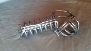 Enter this stainless cage. The beauty of this design is the central triple cock cage which captures the cock, balls, and shaft in their own ring. Augmenting this outstanding start are a pair of cages - one each for your shaft and balls. One of the aspects that sets this cage aside from others is the fact that it bears a length begging to be filled by your throbbing member. While the relatively long shaft cage is not quite enough to hold my own erection, it’s a cage after all, so some restriction is desired.