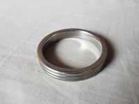 An easy and simple addition to any collection, this grooved ring adds a nice highlight to an otherwise plain ring. While the design element adds some pizzaz, the ring is otherwise unremarkable due to it’s non radiused inner edge and slightly radiused outer profile.