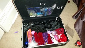 This very first storage solution for the collection is how it all began: the place we stored our sex toys of all variety. As can be seen in the image, this storage solution holds sundry playtime things from ranging from leathers to insertables. The storage solution is simply a vaultz locking storage box. Looking in the right corner of the case, one can see a few storage pouches that held my very first few rings and cage. As I (slowly) grew the collection, I ended up adding a third and fourth pouch to hold things… ultimately leading to the need to grow into some dedicated storage!