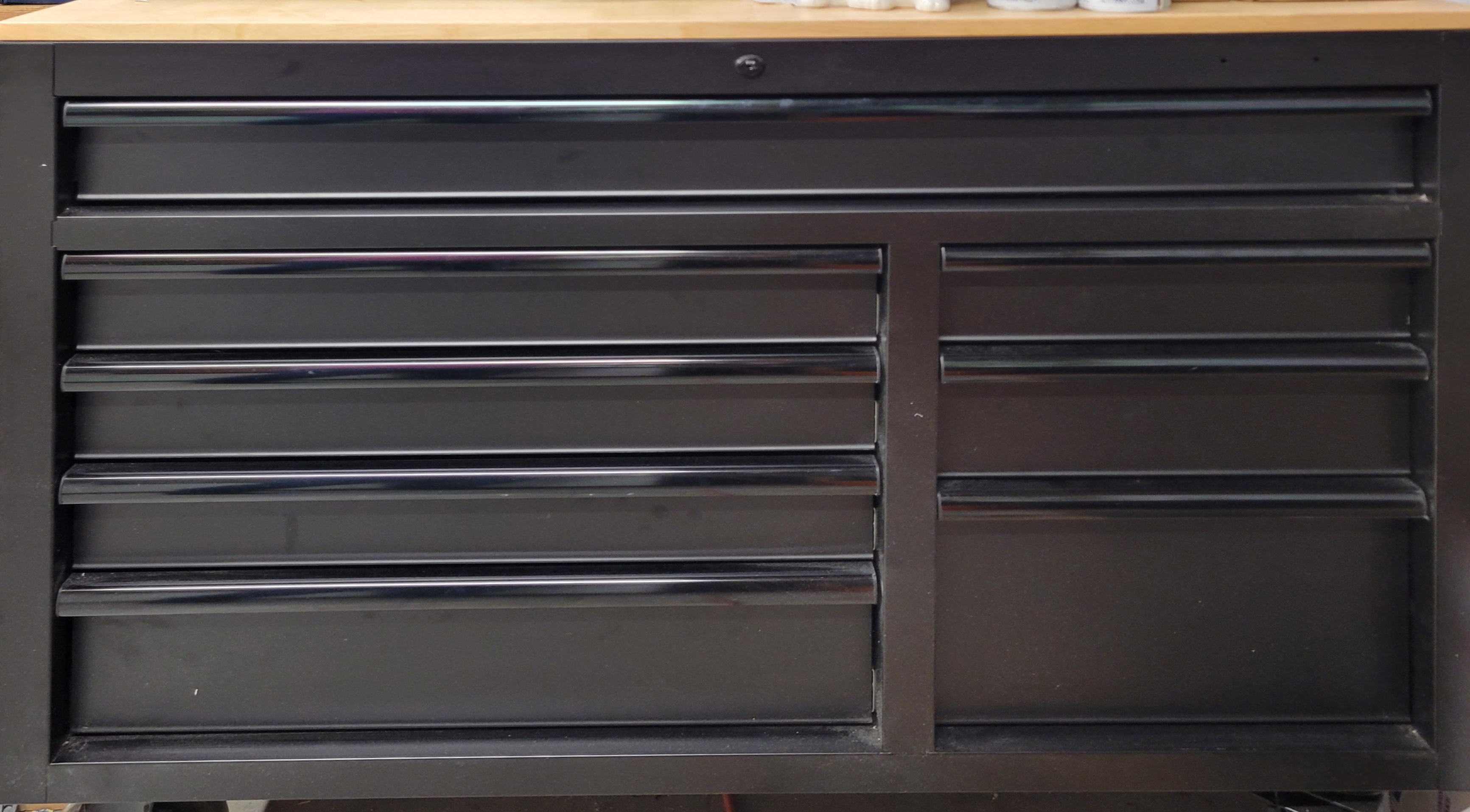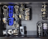 - Shallow Drawers - Sticking with a standard 27" width tool chest would mean I fit the same floor space, but would need more drawers to increase the storage space. Doing this would often mean that some of the drawers will only be an inch or two tall. Examples: this one has top drawers that are only 2" tall - which is fine for glans rings and sounds, but only added about two drawers worth of space to my current solution. Meanwhile, this guy is taller and packs a lot more storage space, but four of the drawers are only 2 3/8" tall - while several of my cock rings require 3" vertical height.