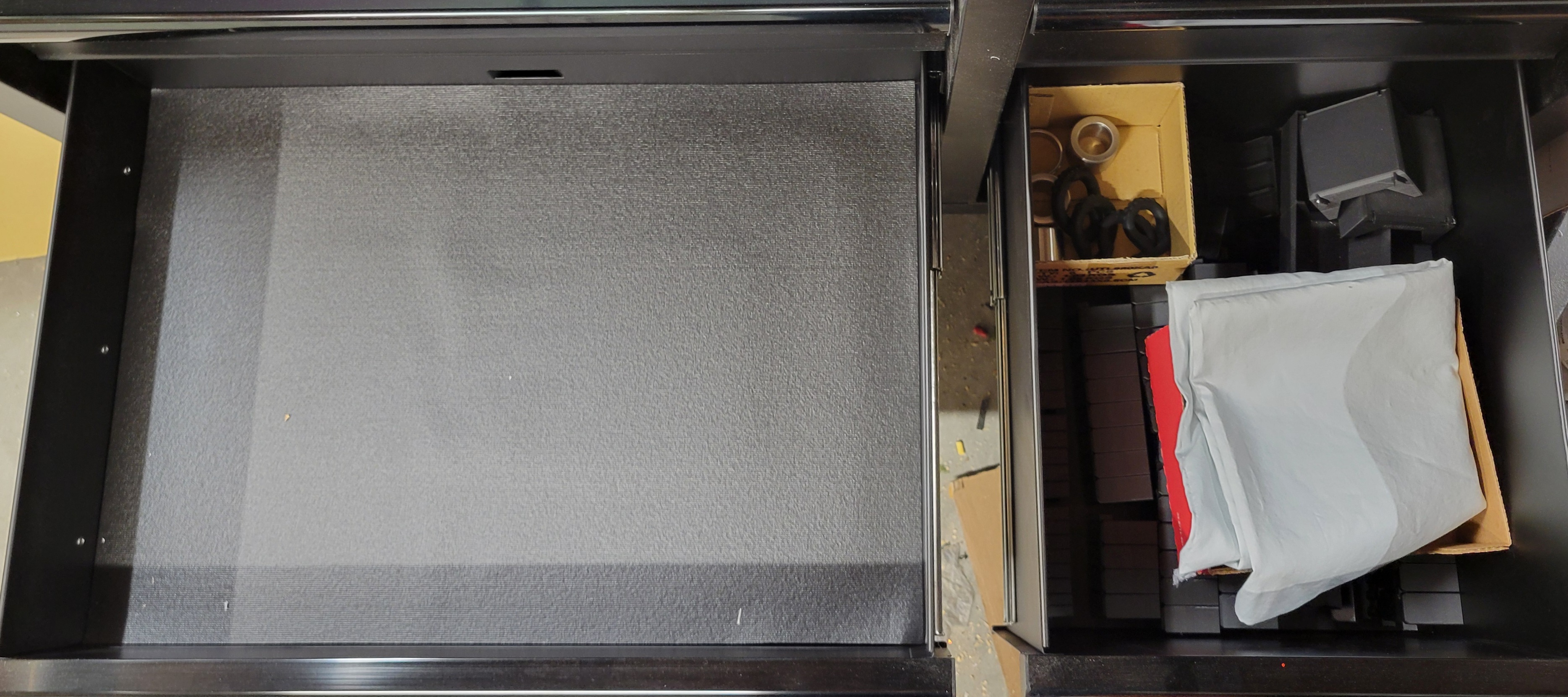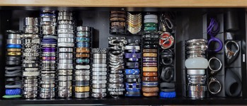 As an engineer, I naturally took a mathematical side quest to determining the storage requirements. The previous tool chest had drawers that measure 22 1/8" wide x 16 1/8" deep. This gives a little more than 356 square inches per drawer. With five total drawers, that’s a total of 1,780 square inches. But I also need storage for my storage (to hold rings I haven’t tried on or reviewed as well as a bunch of pre-made holders) so the fifth drawer is taken out of the equation. This means I need about 1,427 square inches of storage space to break even.