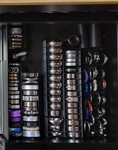 - Three smaller 12 7/8" right side drawers, two of which are 5 1/4" with the third being 8 1/2" deep. The top drawer is home to my glans and shaft rings with the second drawer holding weights to tug on my business. Even better, the deep bottom drawer corrals a selection of pre-made holders as well as a few boxes (for unreviewed items) and the pillow case I always use as the backdrop for photos on this blog.