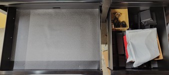 - Four 22 1/8" x 15 1/2" left side drawers with three at 4 1/4" deep and one at 6 1/4" deep. This gives my cages a lovely home - with TWO drawers of space to spare!