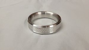 The first in my series of self-designed and created rings, this brick-like offset pattern is carved into a 6061 aluminum body. As a test prior to manufacturing, this was made first on my 3d printer to ensure optimal fit and proportions. The pattern is inset by a few millimeters from a bevel cut edge with the pattern carved into the round profile of the ring. This ring features a perfectly proportioned inner radius to maximize comfort and minimize pinching with an overall width of just under .6" for the perfect distribution of pressure.