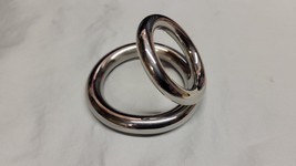 The result was almost exactly as I had hoped. The finish on the listing shows a brushed exterior but the received ring was highly polished as can be seen in the picture. This was a welcome diversion from expectations since I personally prefer more shine to my adornments! Interestingly, there was some black “grime” near the joints where the rings came together. I am not certain, but it appeared to be left-over polishing compound. With a little scraping/brushing, it went away easily. The dimensions were also quite accurate with the 47.5 x 10mm ring measuring 47.63 x 9.99mm while the 35 x 8mm ring came out to be 34.04 x 7.93mm. The weight measured at 5.74 oz (163g). Unfortunately, the amount of curve on the cock ring was not as pronounced as the listing indicated - being much more “flat” than desired.