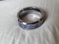 The material is a lustrous silver/gray – it carries the unmistakable imagery of jewelery-quality metals. This just IS NOT the same metal as your typical stainless ring. It’s rich, deep, and masculine while still maintaining shine and sheen. The bevel is perfectly cut all the way around and the raidiused inside is flawlessly executed for ideal comfort. The inlaid dragon is a bright silver set atop a beautiful blue carbon fiber material and layered below a crystal clear resin. I am unable to tell where the resin stops and the metal begins, such is the professionalism of the craftsmanship! This color combination is STELLAR when sunlight catches the ring!