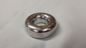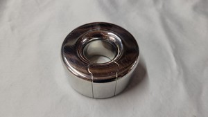 This ring is a two segment ring, like most ball stretchers, thay can be closed by tightening the allen head bolts holding the two halves together. Trying to put this ring on is a mixed bag. While the weight can be separated into halves, that encourages pinching of the shaft. At the same time, the inner diameter is only an inch wide to be able to hold onto the corona with all that weight, so sliding it on without separating the halves is also difficult.